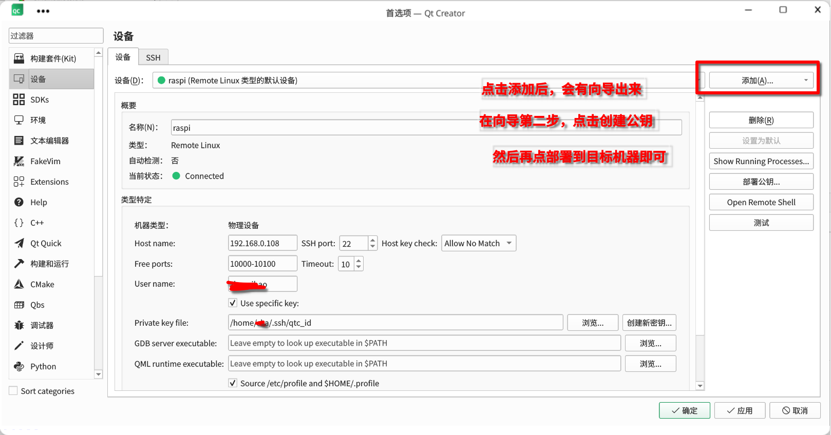 sudo mv /home/ska/sysroot/usr/bin/ninja /home/ska/sysroot/usr/bin/ninja_bkup从QT Creator中一键发布程序到目标机器: